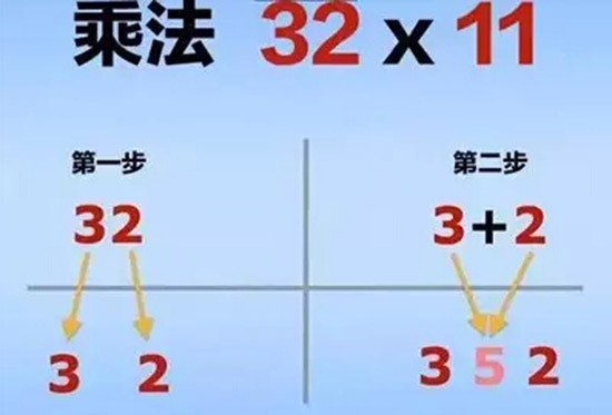 注:个位相乘,不够两位数要用0占位。个位相乘后是两位数,记得加在前一位!