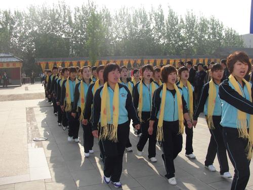 郑州希望幼儿园全体老师高唱着歌曲步入会场