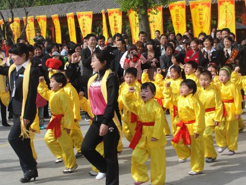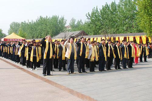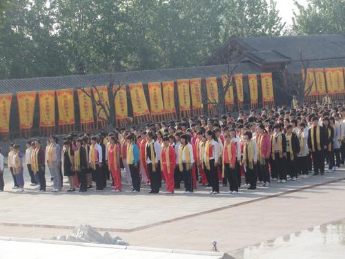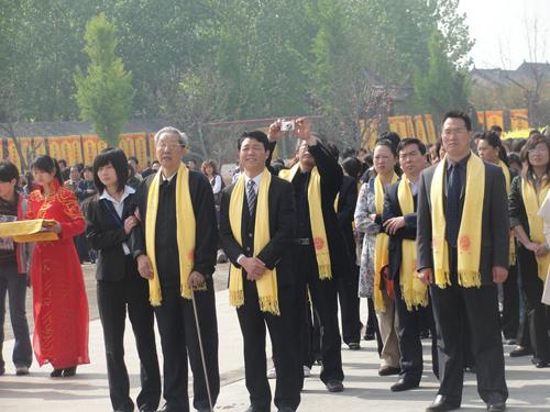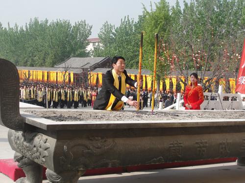 惠风和畅,春意盎然。维公元2010年4月24日,农历庚寅年三月十一,群峰教育组织教育工作者千人供拜轩辕黄帝,是为了在祖先面前立下教育使命:“为帮助天下孩子早日成才,促进家庭健康成长,推动社会和谐发展而全力奋斗!”当此为轩辕黄帝拜学之日,千里中原,和谐奋进之时;弘扬民族文化,促进和谐教育是本次黄帝故里拜祖大典的宗旨。恭拜始祖轩辕黄帝曰: