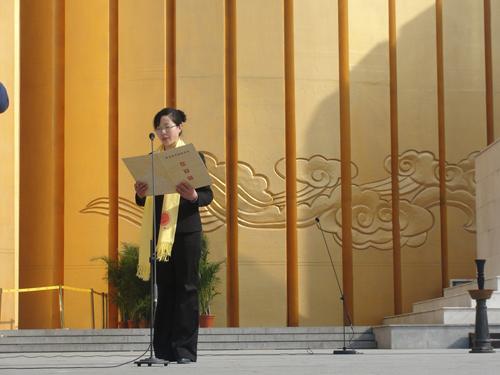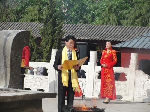 8点55分,群峰教育总裁李群峰先生恭读拜祖文。李先生恭读拜祖文时,声情并茂,时而用舒缓的语气表达对始祖皇帝的悠悠赞叹,时而又慷慨激昂,抒发了内心对所从事的教育事业美好憧憬的激越真情。