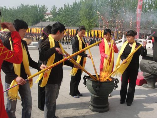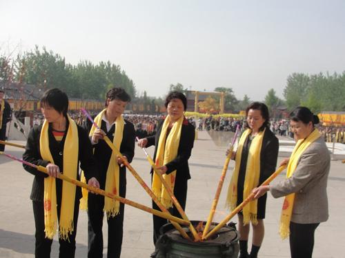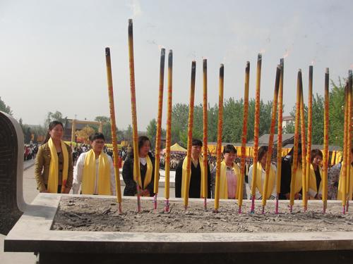 8点40分,群峰国际教育机构总裁李群锋先生代表本次活动组委会向轩辕黄帝的塑像敬香。当精美的香烛插在硕大的香炉内,面对着轩辕黄帝塑像礼拜时,不由得使人们倍感虔诚,心灵和思想境界也随着缭绕的香烟而升腾、净化。