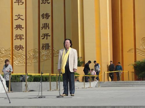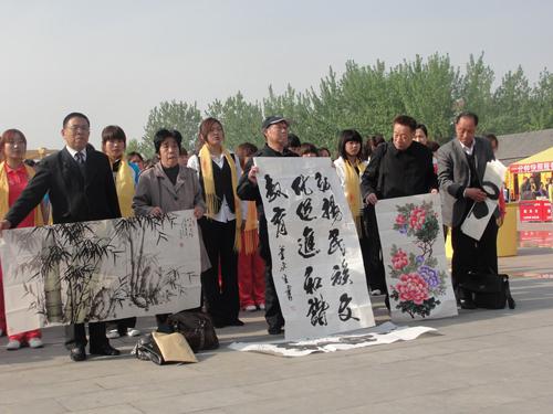 9点10分,在吟唱黄帝颂的音乐声中,我省著名书画家马培厚、董永生、朱洪套、张永怀、温桂英等