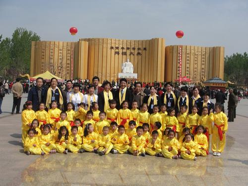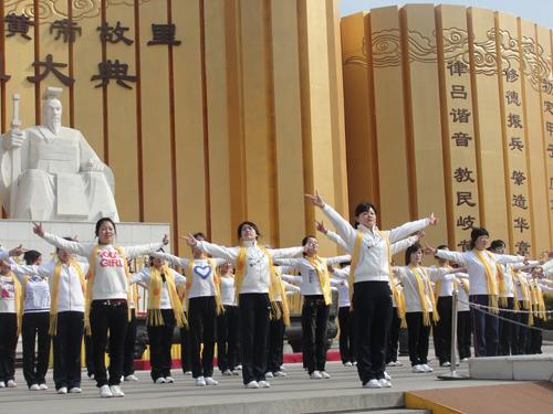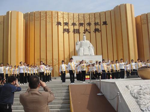 2010年4月24日上午,惠风和畅,春意盎然。在庄严、肃穆的中华民族人文始祖轩辕黄帝的巨大雕像前的拜祖台广场,群峰教育全脑开发国际训练机构在这里举办了首届和谐中国(新郑)黄帝故里拜祖大典活动。
