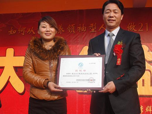 李群峰老师为时光幼儿园的优秀老师颁发荣誉证书