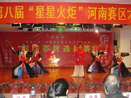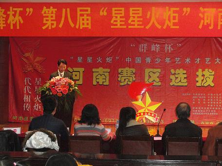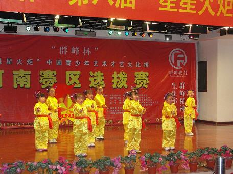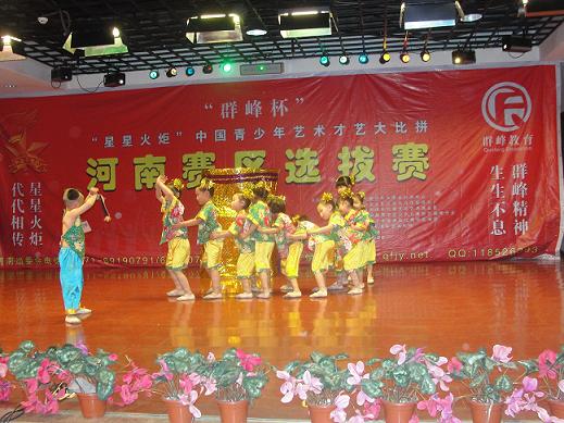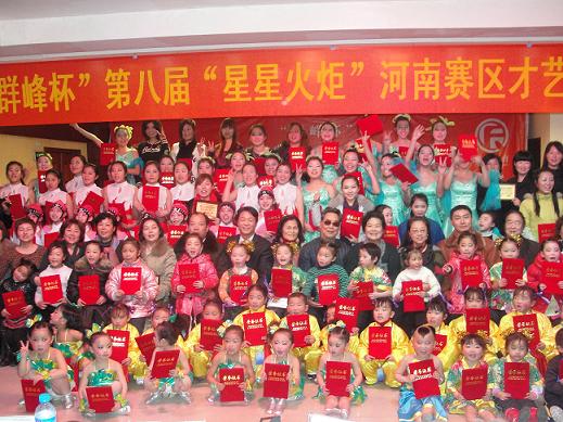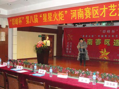 承载着童年与快乐,承载青春与活力,承载着智慧和激情。2010年12月19日,由群峰国际教育机构和河南省星星火炬组委会共同举办“群峰杯”第八届星星火炬大赛隆重的在郑州市天河大酒店三楼演播厅正式拉开帷幕。出席本次活动的有:星星火炬河南赛区主任马爱松、群峰国际教育机构总经理兼星星火炬河南赛区副主任李群峰、原开封曲剧团团长耿长海、白俄罗斯国立音乐学院海归留学生现在是高级优秀的音乐教师陈亮、中国舞蹈教育委员会常务理事孙娟、中国音乐家协会理事郑州大学教授范志喜等领导和专家。