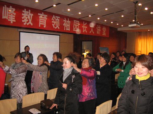 2010年12月18日在焦作市凯悦大酒店隆重举行了焦作市第二次专场会议和谐中国领袖园长大讲堂——《幼儿园快速发展的九大秘籍》。参加本次会议的幼儿园有103家,参加会议的园长都是一些当地非常优秀的幼儿园的管理者。幼儿园的竞争就是园长学习力的竞争,园长的思路决定幼儿园快速发展的出路。越是学习力强的园长幼儿园在当地办的就越好。参加本次会议的幼儿园有:武陟县西街幼儿园吕玉娥园长、武陟县慧而宝宝苗艳芳园长、武陟大封镇大司马中心幼儿园杜春莲园长、大封村中心幼儿园李爱霞园长、大封镇西岩幼儿园张耐烦园长、大封镇驾部学校韩春霞园长、焦作市市区精典幼儿园赵燕青、焦作市龙凤安娜园长、焦作市一代天骄幼儿园徐福霞园长、沁阳市崇义镇中心幼儿园杨延聪园长、沁阳市西向镇星星幼儿园张银花园长、沁阳市木楼中心王玲玲园长、温县育杰幼儿园魏园长、南张羌中心幼儿园周小莉园长、温县龙凤飞张迪园长、温县康乐幼儿园侯琼园长、孟州新星早教徐敏园长等。
