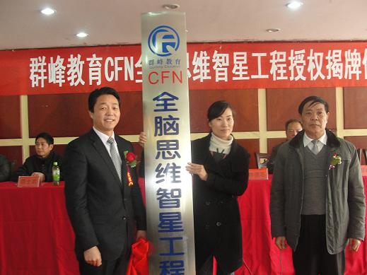 群峰教育机构总裁李群峰和商丘永城市新世纪幼儿园园长姬莉揭牌