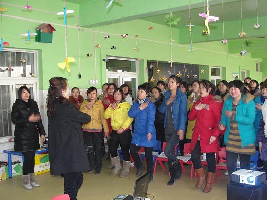 2010年1月23日群峰国际教育机构的教学部神童教练曹丽萍老师和张淑珍老师在郭艳老师、赵纪锋老师的陪同下,到达了辉县市一级幼儿园——辉县童星幼儿园进行了教学技能培训,幽默型的教学与严谨的教学形成了动静相结合的教学模式,赢得了辉县童星幼儿园优秀老师们的阵阵掌声,整个教学的过程都在愉快的过程中进行的,本次培训也获得了非常好的效果和良好的成绩!