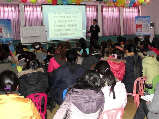 面向大世界,培养小能人。“小能人!能!能!能!”2011年元月22日对于济源小能人幼儿园是一个特殊的日子,也是一个值得纪念的时刻。因为今天群峰教育CFN全脑思维智星工程示范园济源小能人幼儿园,于北海中心幼儿园举行了一场隆重的大型爱心团队大讲堂。本次大讲堂特别邀请了国内当代爱心教育专家、幼教资深专家李群峰老师,李老师亲临现场为近百名小能人骨干精英教师授课。本次爱心团队活动以“成就自我,熔炼团队”为主题,通过开展“抱团打天下”等游戏式、互动式、体验式的团队游戏,极大地激发了在场每一位教师的主人翁意识,全面提高了小能人教师团队的凝聚力、向心力和执行力!