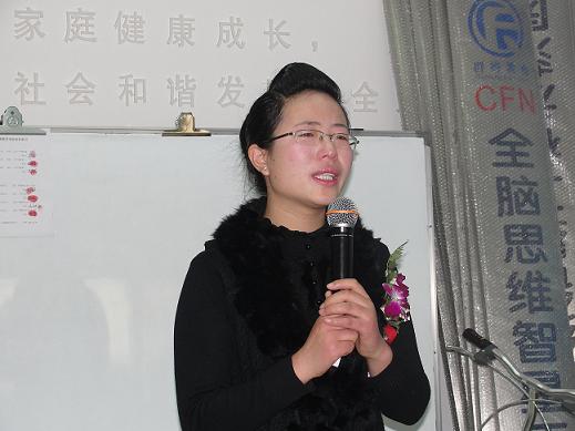 她是我入门的老师,领着我一点一滴学习国学,精心详细地将、诲人不倦的教、毫无保留的传授,是我在最短的时间掌握了培训的步骤、服务流程、工作要领及服务工作中应注意的地方。我永远的好老师、好搭档、好朋友!