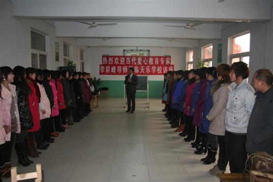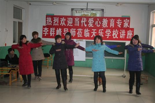 2011年2月13日是一个特殊的日子,是群峰教育CFN全脑思维智星工程示范园焦作市武陟县天乐幼儿园的爱心团队大讲堂的日子,本次会议也特别邀请了国内当代爱心教育专家、幼教资深专家李群峰教授亲临现场为天乐幼儿园带来了丰富的培训大餐。天乐学校的所有教师团队及园长、董事长一起参加,以一种游戏式、互动式、体验式的方式来让老师真正的体验到主人翁意识、让老师们更加的有团队凝聚力、向心力和执行力!
