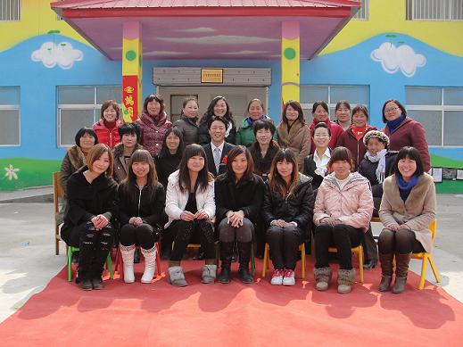 漯河大刘试验幼儿园的全体老师、园长和李群峰老师合影留念