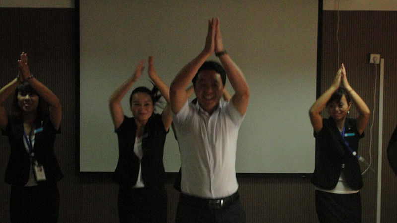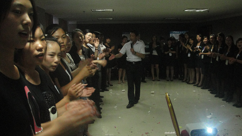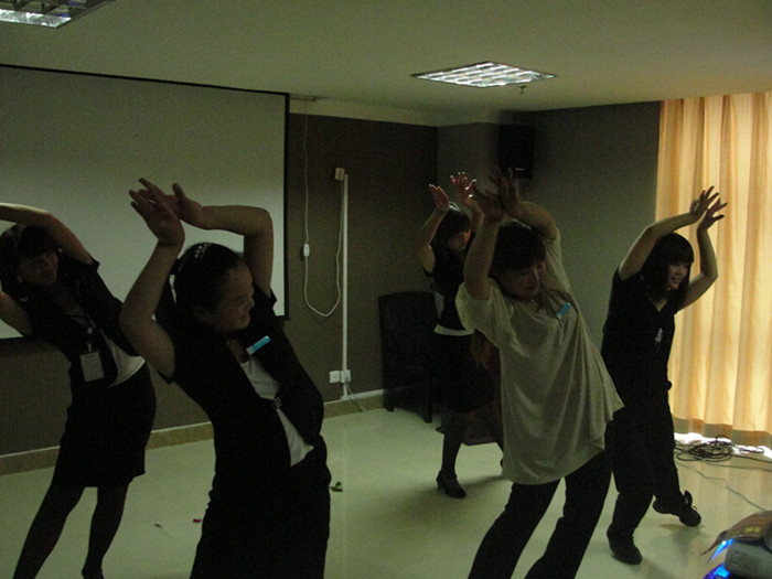公司董事长李群峰老师带领大家跳激情舞蹈