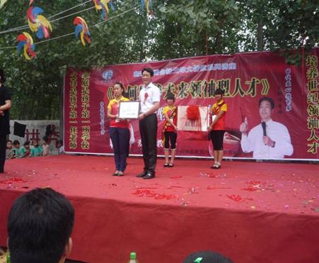 2012年7月7上午八点日迎来了杞县沙沃乡爱心幼教中心成为群峰教育爱心联盟园的揭牌仪式。这天天气非常的不好,但依然没有阻碍家长学习的热情,大家准时到场,让许园长很是感动。