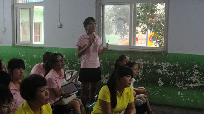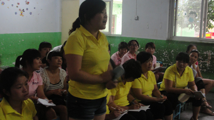 穿着统一服装,竞相坐在第一排的老师们是我们今天的东道主巩义市河洛镇实验幼儿园的老师们,我们的老师热情好客,参与积极。在每次的参与过程中都能很准确的并且能够将问题的核心答案回答出来。