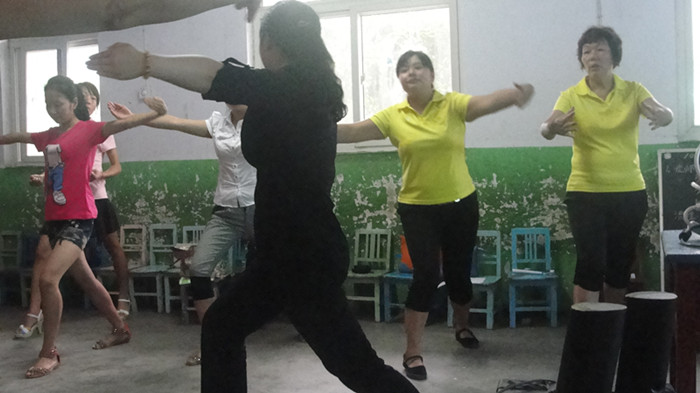 《弟子规》是我们中国传统的文化精髓,《弟子规》操也是结合了我们中华的武术精髓,所以我们做操的话每个动作要标准有力,把我们中华的武术也要表现的淋漓尽致。李娅琳老师站在我们老师中间,细心认真的教授每个动作。