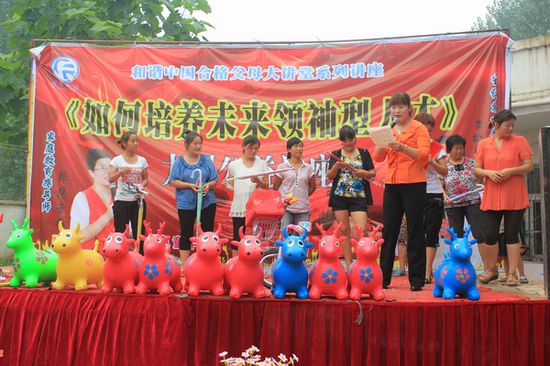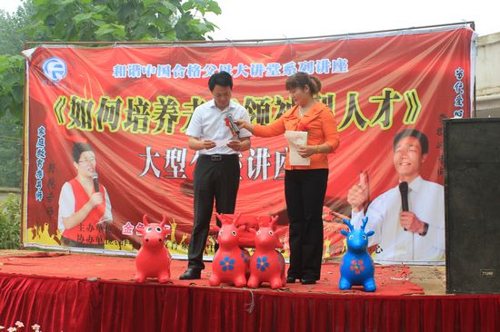 优秀的主持人张老师为幸运的家长们颁发小礼品。