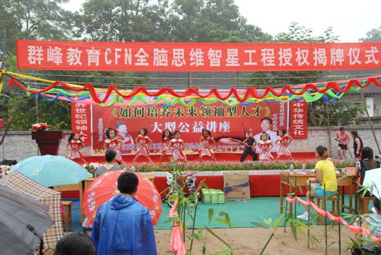 在2012年7月31日这个特别的日子里,我们迎来了群峰教育在里村英惠幼儿园举行的授权揭牌仪式。上午8:30,揭牌仪式准时开始。虽然天空飘起了蒙蒙细雨,但丝毫没有妨碍此次活动的顺利进行。