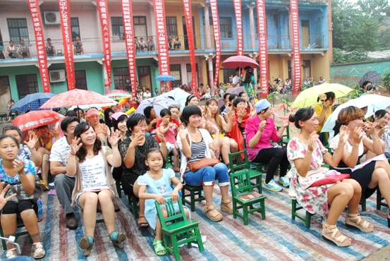 台下的家长们听得非常认真,虽然头顶雨伞,仍旧阻挡不了他们对教育知识的渴求。