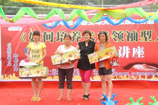活动的末尾,我们还设了抽奖环节,所有获奖的家长们都可以得到一件礼品。图为石园长为幸运的家长们颁发奖品,并合影留念。