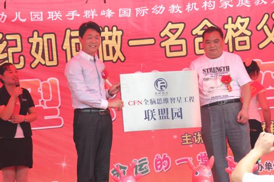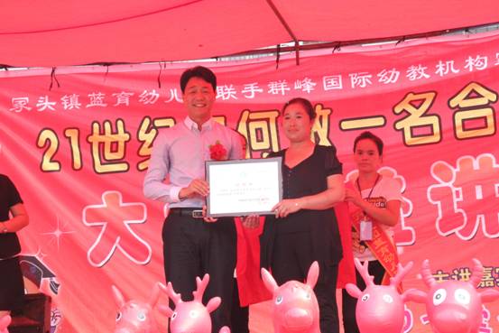 2012年8月9日平顶山市郏县冢头镇蓝育幼儿园成功举行群峰教育CFN全脑思维智星工程联盟园授权揭牌仪式