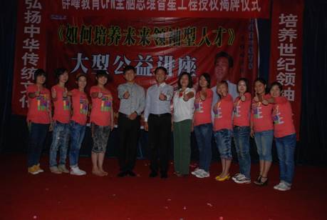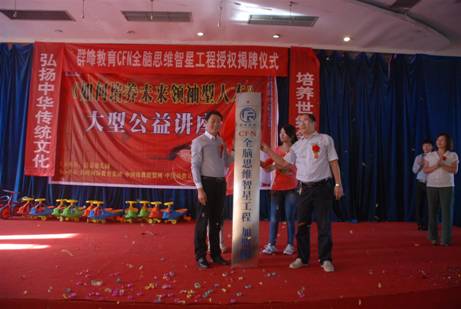 8月22日下午4:00,在叶县启蒙幼儿园成功举行群峰教育CFN全脑思维智星工程授权揭牌仪式。我们怀着热情洋溢的心情,满怀希望和期待地迎来了这个激动人心的时刻!下午虽然烈日炎炎,怀着感恩、怀着责任、怀着对孩子的爱,胡园长还是积极地为我们这场仪式做了充分准备。