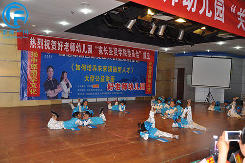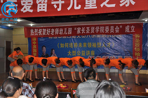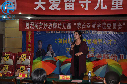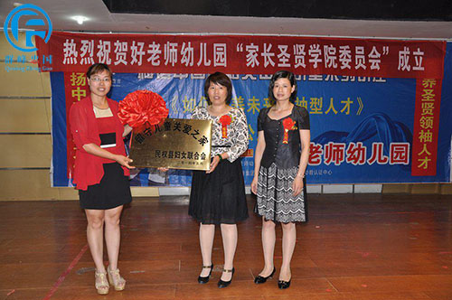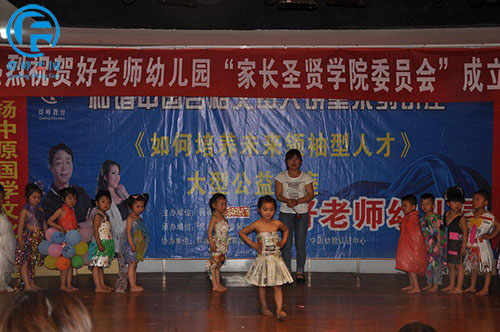 2014年5月27日民权县好老师幼儿园成功举行了“家长圣贤学院委员会”成立仪式。此次活动仪式成功邀请到了群峰忠国教育集团最具影响力的女子团队培训师、群峰国际教育集团爱心团队大讲堂金牌讲师、群峰国际教育集团董事兼执行总监郭艳老师,以及民权县妇联主席、民权县教体局相关领导、民权县关工委负责人等领导出席了此次成立仪式。“家长圣贤学院委员会”是好老师幼儿园打造家园共育平台路上的里程碑。