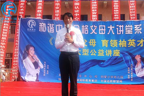 2014年5月28日,在这热情的季节里,商丘明星小学请来了当代爱心教育专家、群峰忠国教育集团董事长李群峰老师为当地的家长进行《做圣贤父母,育领袖英才》大型公益性家庭教育讲座,促进家庭健康成长,推动社会和谐发展。