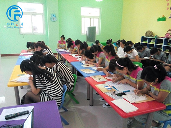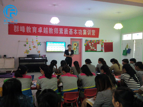 群峰忠国教育集团培训部王振丽老师精彩生动的教学赢得了在座老师的喜爱,老师们认真倾听,积极互动,展开了别开生面的教师素质基本功训练。