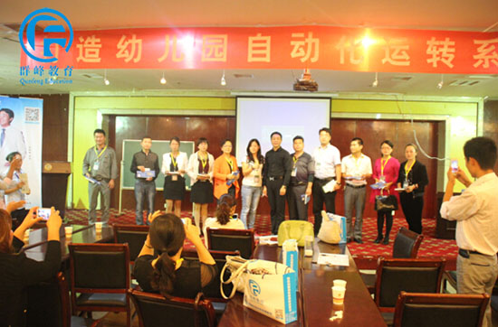 最后,部分优秀园长和李群峰老师亲切合影,他们感谢李群峰老师给他们带来了新的方法带来新的收获,他们学到的不仅是方法,更是迈向成功的工具,新世纪要有新改变,新改变要有新方法;新方法就要不断的去学习,为学习才是最具有生产力的事情,相信每一位前来学习的园长家人所在的幼儿园在吸收了新的方法和理念之后,幼儿园一定能够越办越好!