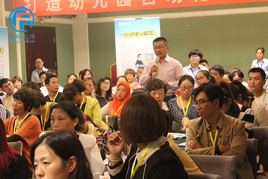 会现场我们园长与幼儿教育专家积极互动,园长提出他们在办园过程中所遇到的问题,李群峰老师并一一给园长进行解答;