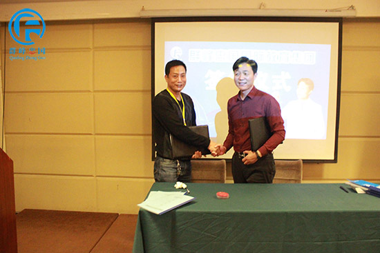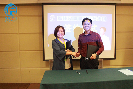 安徽省阜阳市幸福幼儿园成功与群峰忠国教育集团签约,岳园长与群峰忠国教育集团董事长李群峰老师合影留念;