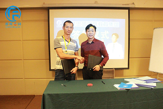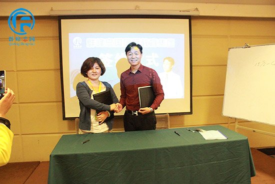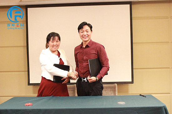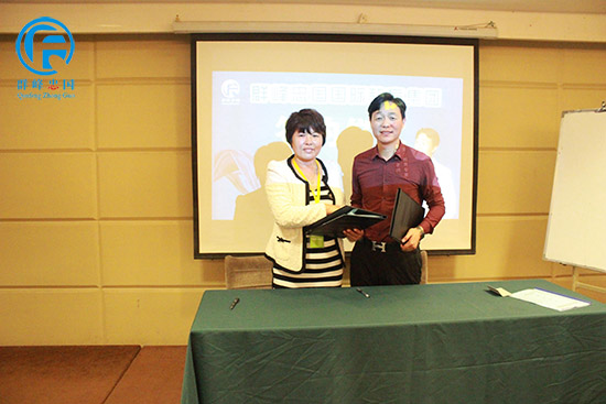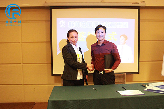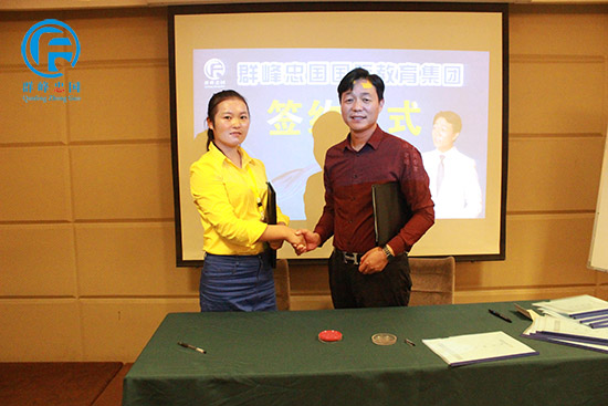 商丘市柘城县新思维幼儿园成功与群峰忠国教育集团签约,徐园长与群峰忠国教育集团董事长李群峰老师合影留念;