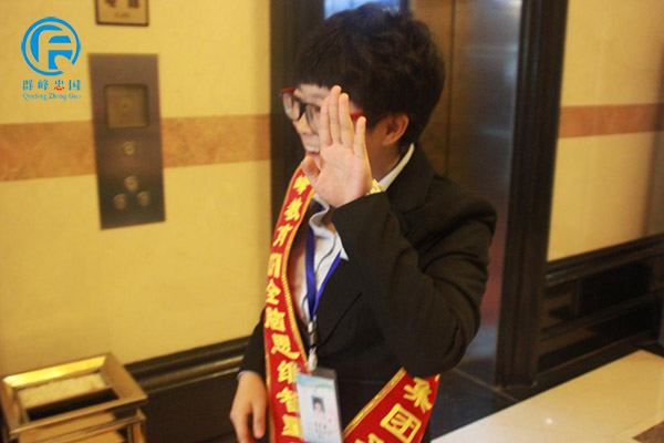 群峰教育集团家人辛昌园在电梯口为远道而来的园长们引路。