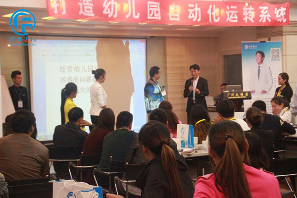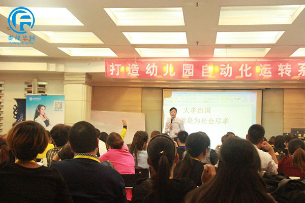 李群峰老师正在分享精彩课程,传授幼儿园经营之道。