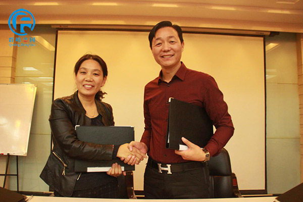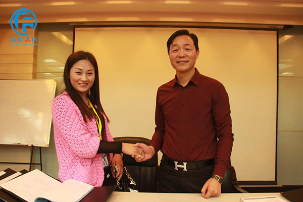 祝贺周口郸城县爱心幼儿园与群峰教育集团签约,苗园长与群峰教育董事长李群峰合影!