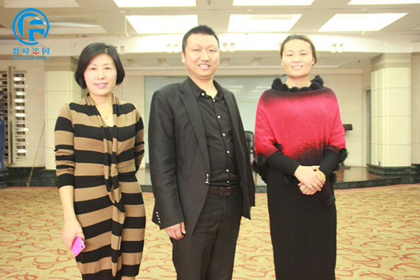 祝贺西华清河驿乡北大博文双语学校与群峰教育集团签约,刘董事长和两位园长与群峰教育董事长李群峰合影!