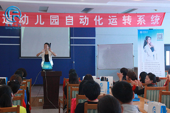 9点10分,我们群峰教育主讲老师郭艳老师,带着饱满的激情,进入会场,给大家分享幼儿园自动化运转课程。