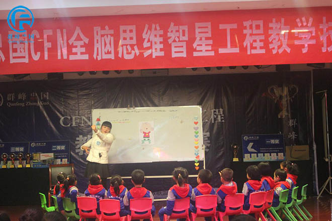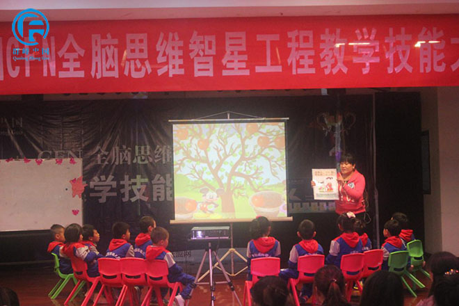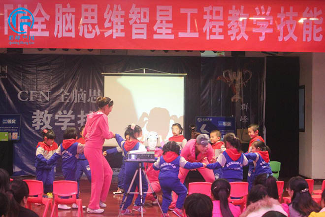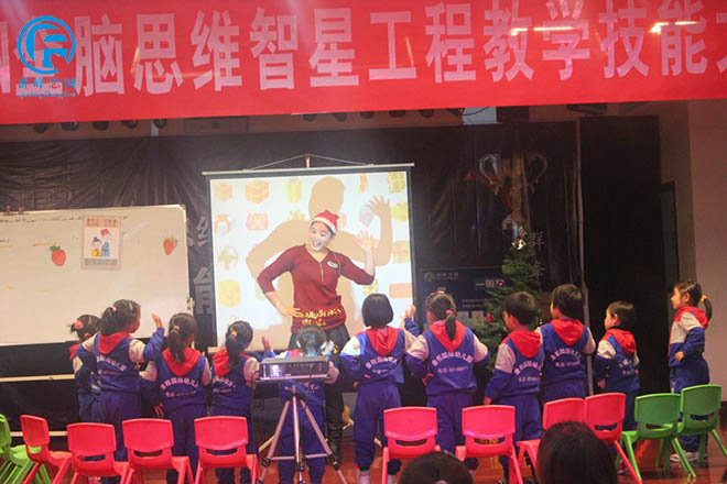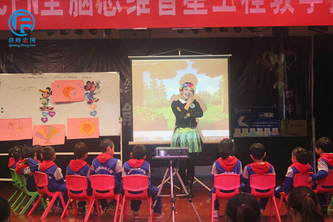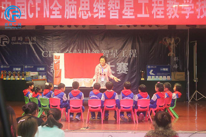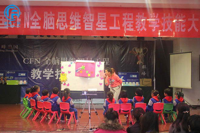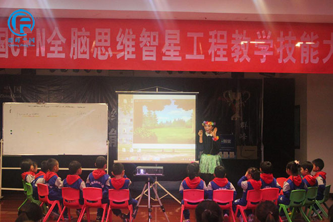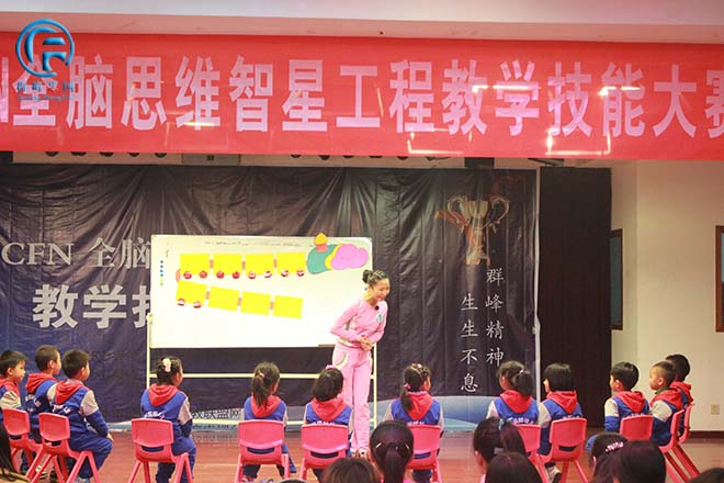 12号选手武陟蓓蕾幼儿园在用形象生动的语言演示给孩子们看。