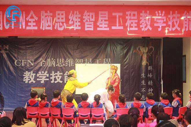 2号选手商丘启蒙幼儿园教师团队正在表演情景剧《西游记》;