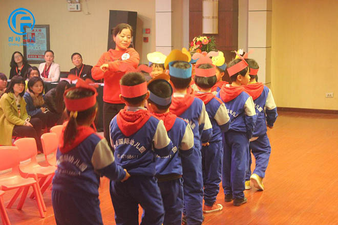 4号选手睢县大风车幼儿园李雪静老师正在和孩子们一起开火车。