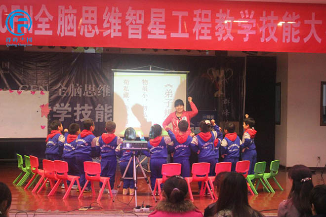 4号选手睢县大风车幼儿园李雪静老师正在引导部分孩子诵读《弟子规》;