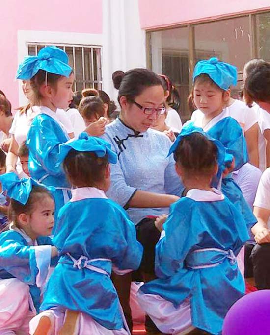 康乐幼儿园的老师们早早的就来到活动现场精心准备布置会场。