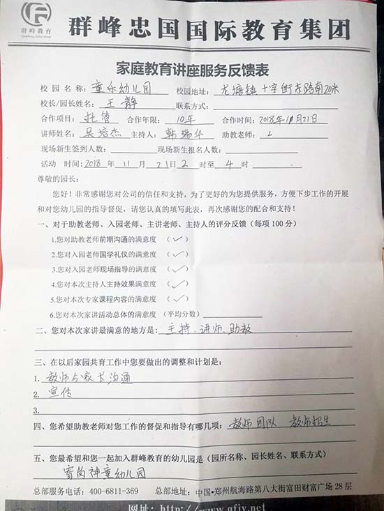 来对我园的大力支持与信任,快乐而幸福的一天在充实中结束了,
