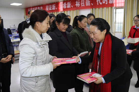 (张艺筠老师给慧星城各位优秀教师赠送书籍以示纪念)