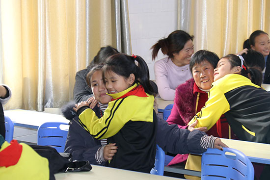 (在爱的滋养下,孩子们和家长懂得了亲密关系的表达方式,纷纷用拥抱铭记这一刻)