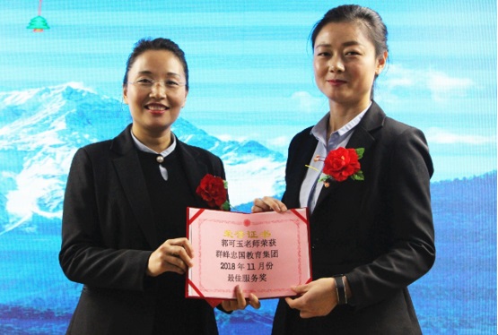(11月份群峰教育冠军领袖由郭评老师摘冠,在郭萍老师的统一部署下,服务中心