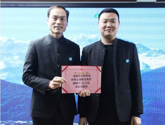 (温客松老师荣获11月份集团公司最佳贡献奖,温老师无论走到哪里都会把群峰