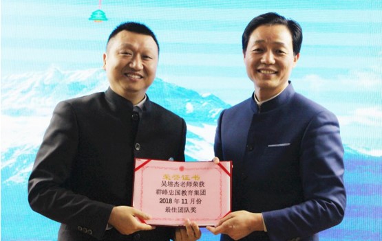 (吴培杰老师荣获群峰教育11月份最佳团队奖,在吴总的带领下,市场中心家人