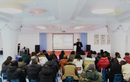 圆满举办,上图为幼儿园老师主持本次讲座。